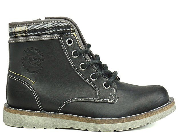 Drenge støvle m/snøre og let for. Støvlen er i sort imiteret skind. God til skolebrug, men også pæn, hvis I skal en tur i byen.